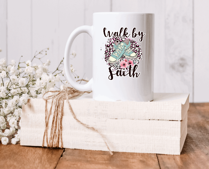 Walk By Faith - mug - Messy Bun - Blue ribbon or Orange Ribbon